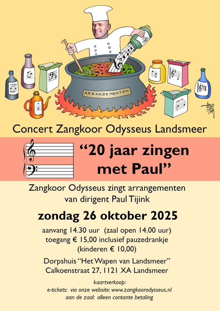 Zondag 26 oktober is er een concert ter gelegenheid van het 20-jarig jubileumvan onze dirigent Paul Tijink.